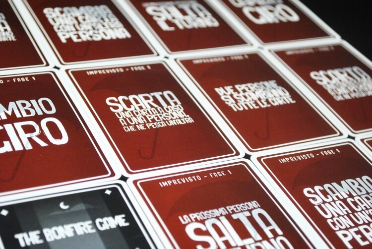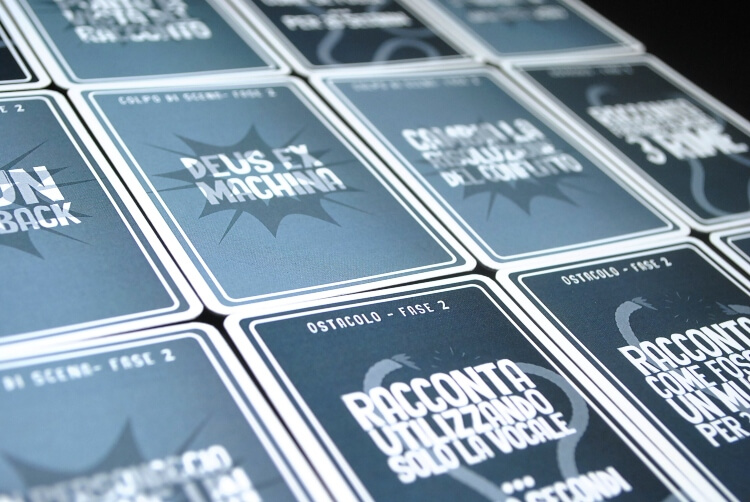 Queste carte saranno delle stilettate che i vostri “amici” vi daranno, sarà un modo per rallentarvi e mettervi in difficoltà. Vi potranno far cambiare punto di vista del vostro racconto, o far succedere qualcosa di inaspettato, farvi fare 3 rime, usare una sola vocale per 30 secondi, trasformare la vostra storia in un musical e tantissimo altro ancora.