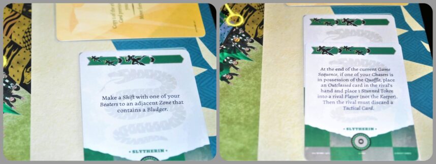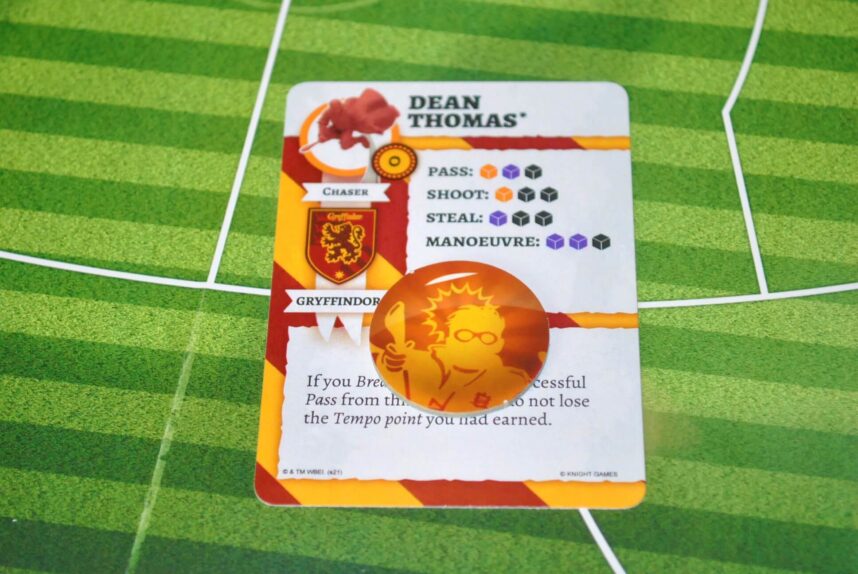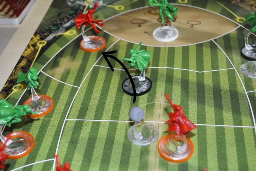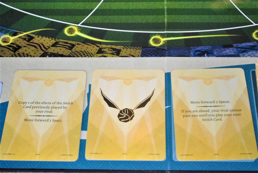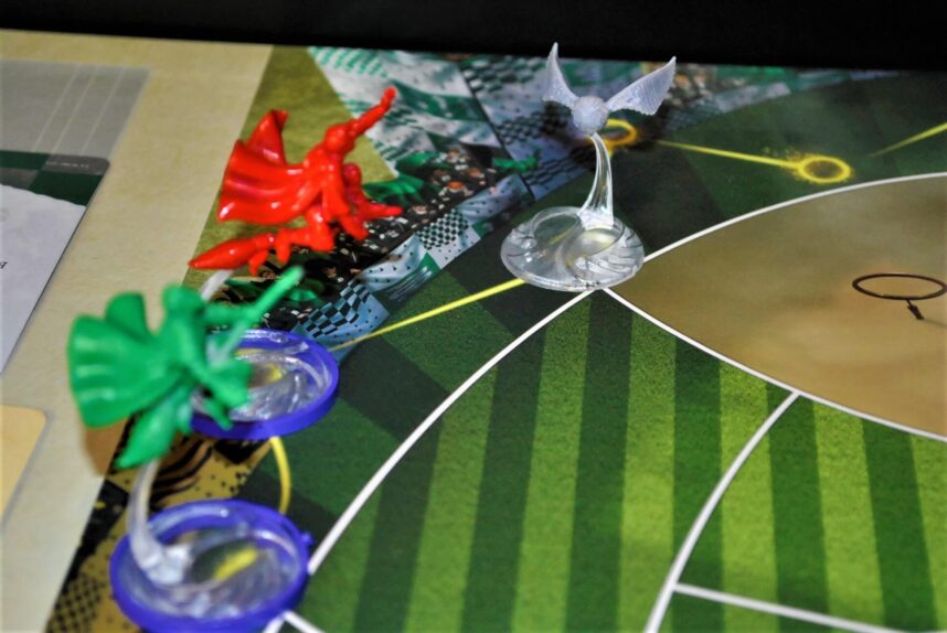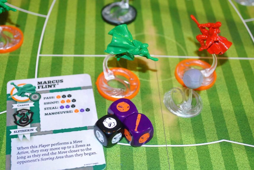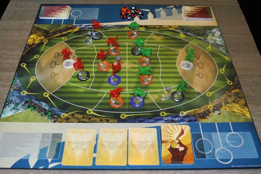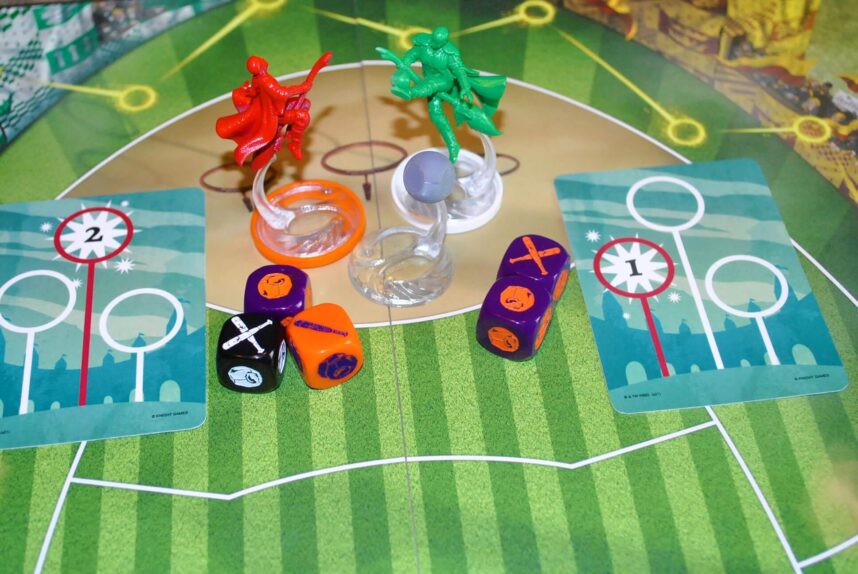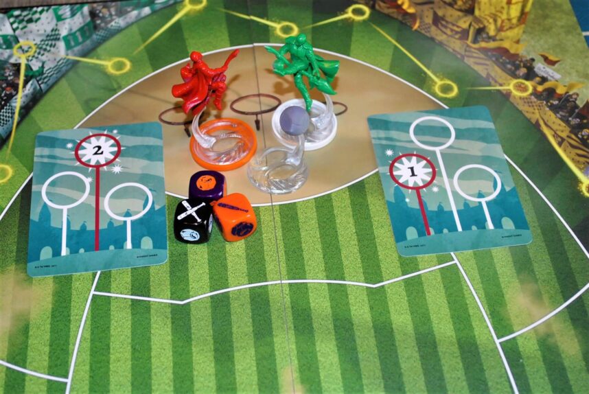 Il cacciatore di Grifondoro cerca di fare Goal. Il primo successo lo ottiene con le carte che mostrano numeri diversi. Lanciando poi i dadi i successi salgono a 2. Al momento avrebbe fatto punto (continua…).