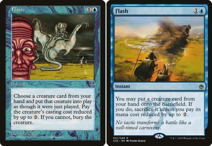 Facciamo un po’ di storia. Guizzo è un istantaneo molto conosciuto nella community del gioco. Rilasciato per la prima volta nell’espansione Mirage (1996), il suo boom lo ebbe nel 2006/2007 con l’uscita della carta Mole Proteiforme in Discordia. Permettendo di giocare e sacrificare rapidamente la creatura e tutore verde, presto nacque il deck Combo chiamato Hulk Flash. L’archetipo ebbe una versione in Extended (dove andava in combo con Discepolo della Volta e Saccheggiatore Elettrofuso) e nei formati eterni (specialmente in Legacy dove andava in combo con Kiki-Jiki, Spaccaspecchi e Guida del Karma). Con il predominio di questo deck, la carta venne subito bandita in Legacy (nel 2007) e in Vintage (nel 2008). Il recente ban in Commander non è lontano da queste vicende. Fino al 20 aprile, la carta è stata molto giocata in Commander: nella maggior parte dei casi, proprio in combo con Mole Proteiforme. Oltre, alle molteplici combo, molti giocatori sfruttavano questa magia per giocare con facilità il comandante. Sentendo le opinioni di molti giocatori esperti, il Commander Rules Committee ha deciso di bandire la carta.