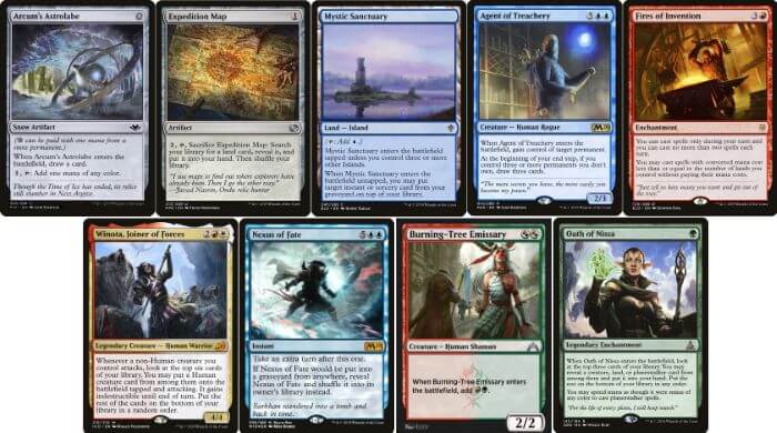 Molto particolare è la carta Santuario Mistico. Si tratta di una terra decisamente utile per riutilizzare istantanei e stregonerie, negli ultimi mesi è stata sfruttata in Pauper per riciclare magie ritardanti negli archetipi: Delver, Izzet Skred e Flicker. Visto che questa terra aumenta il fattore di loop e di lock di questi deck, portando un consequenziale rallentamento del gioco, la Wizards ha deciso di bandirla.
