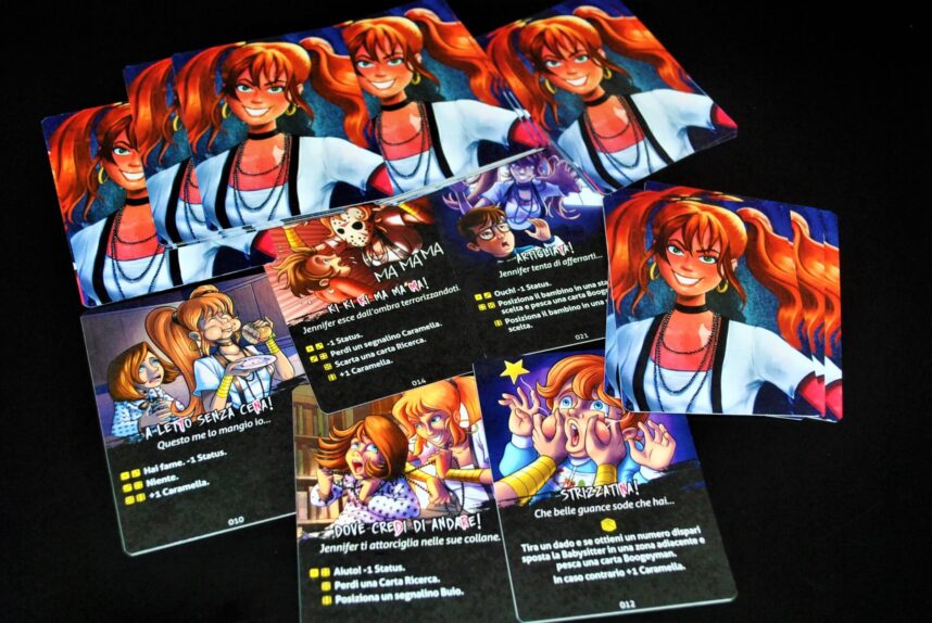 Se la babysitter, durante il suo movimento incrocia un bambino (o viceversa), il bambino dovrà pescare una carta incontro di Jennifer e risolverla.