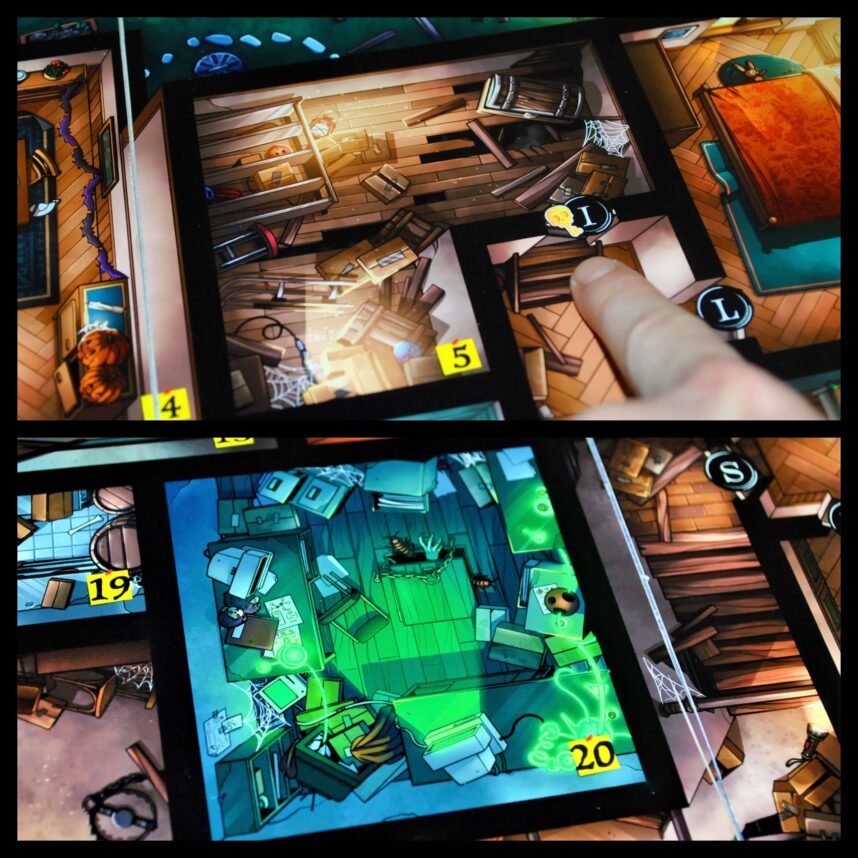 All’inizio del suo turno dovrà decidere in quale stanza della casa nascondersi, prende il relativo token numerato e lo posiziona sul suo tracciato delle apparizioni.