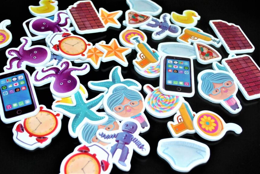 Riconoscere le forme non è così scontato, soprattutto all’inizio, molte sono simili tra di loro ma dopo un attento esame e qualche partita si imparano a riconoscere… il vero problema però è trovarle tra le 42 presenti all’interno della scatola!