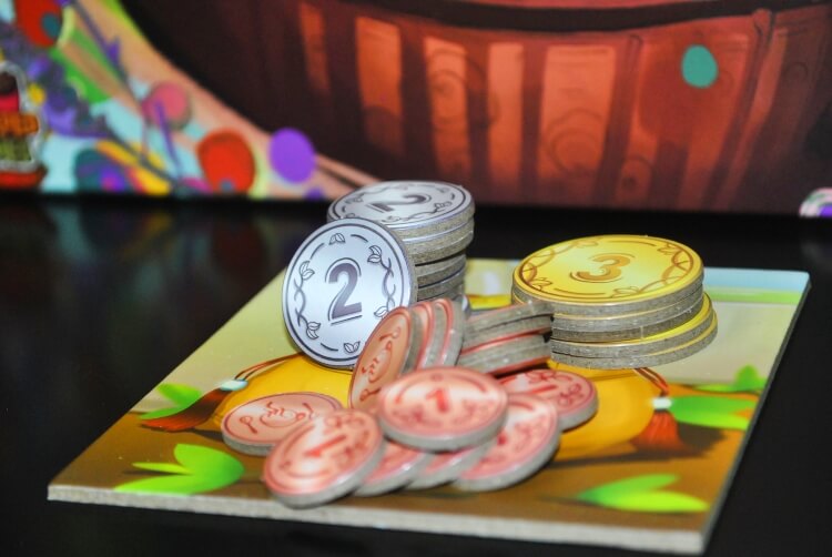 Posizionate la clip del Termometro sui 0 gradi (1° round), scegliete il primo giocatore e date a costui una moneta di rame come bonus iniziale, gli altri invece inizieranno con una moneta d’argento.