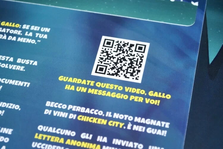 Per prima cosa dovremo in quadrare il codice QR che troveremo sulla copertina del libro. Un video con il Detective gallo ci introdurrà al gioco e all’indagine.