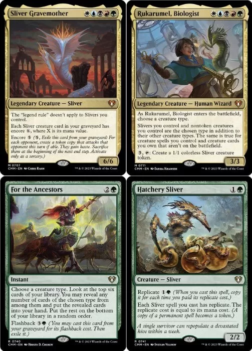 Sliver Swarm è un Tribal Sliver che sfrutta tutti i colori presenti in Magic. Per chi non lo ricordasse, i tramutanti sono un tipo di creatura che ha la caratteristica di potenziare i suoi simili… La strategia è semplice: più si giocano tramutanti e più diventano devastanti! Un deck estremamente semplice, ma diventa velocemente davvero potente. I nuovi tramutanti proposti sono molto interessanti, tuttavia il deck va potenziato con alcuni tramutanti cardine (come Signore Supremo dei Tramutanti e Il Primo Tramutante) e con altre magie di protezione per salvare l’esercito (come Comando del Patriarca o Intervento Eroico). Lo consiglio vivamente ai giocatori che vogliono approcciarsi al Commander.