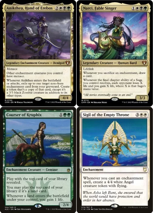 Enduring Enchantments è un deck dell’accoppiata Abzan (bianco, nero e verde) Enchantress che sfrutta la meccanica Costellazione. Questo è un archetipo classico, sostanzialmente bisogna giocare più incantesimi possibili per guadagnare vantaggi di sorta. Sono presenti le migliori creature che interagiscono con gli incantesimi, manca solo Incantatrice Argothiana. Anche il piano degli incantesimi è eccezionale, tuttavia può essere migliorato con magie devastanti come: Boschetto Prezioso, Isolamento, Riposa in Pace, Infestazione Sacra e così via dicendo. Dei quattro deck questo è il “meno originale”, ma è indubbiamente uno dei più solidi e potenti: lo consiglio vivamente ai giocatori che vogliono una base concreta per giocare e vincere in competitivo.