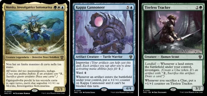 Altri cicli sono le Weapons (equipaggiamenti che hanno anche il tipo indizio) e le Rooms (dieci Dual Taplands che permetto di generare pedine indizio). Torneranno utili in competitivo;