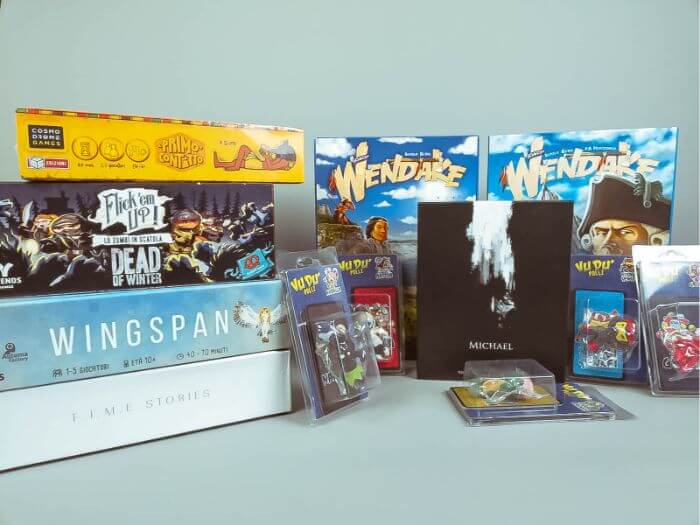 Finita la fiera ne approfitto per farmi un piccolo giro al volo tra gli stand e vedo diverse cose interessanti, ma per prima cosa ho ritirato la mia copia di Michael da Mancalamaro che me l’hanno messa da parte dal giorno prima. Continuo il mio giro e vedo poche offerte ma decido di prendere delle cose interessanti al volo, perché so che non avrò mai tempo di riprenderle nei giorni a seguire, noto allo stand Ghenos un Flick em Up Dead of Winter a 15€ invece che 45. Ok Vediamo se riesco a passarci domani.