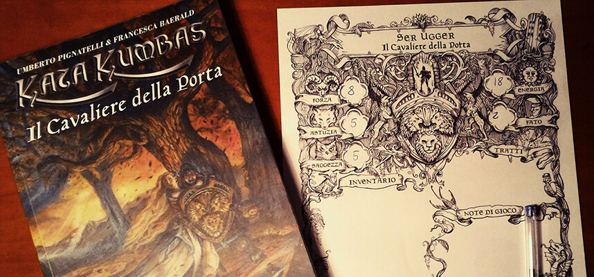 Ciao a tutti! La genesi del Cavaliere della Porta e dei suoi due seguiti e` stata particolare. Sono partito con l’idea di fare un semplice spin-off del gioco di ruolo Kata Kumbas Edizione Selvaggia (riedizione del celebre Kata Kumbas degli anni ’80), ma il progetto ha preso rapidamente vita propria. Quello che caratterizza le due serie Arborea e Kata Kumbas e` che sono realizzati a quattro mani con l’illustratrice Francesca Baerald. In queste serie infatti l’interazione di arte e testo e` fortissima: tutte le illustrazioni dei libri sono parte del gioco stesso e contengono sempre paragrafi nascosti (i cosiddetti numeri-enigma), giochi e sciarade di vario tipo, che sono un po’ il marchio di fabbrica di entrambe le serie.