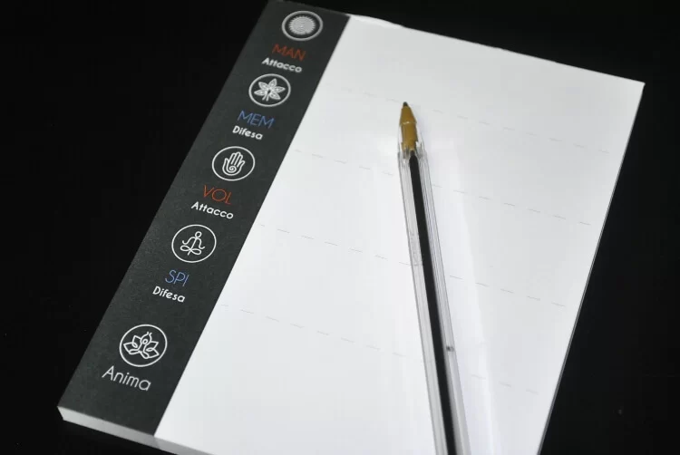 Caratteristiche che si dividono in quelle di ATTACCO e DIFESA. Quelle di attacco sono Mana e Volontà mentre quelle di difesa sono Spirito e Memoria.