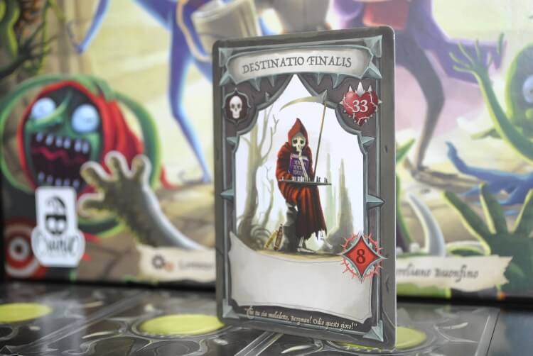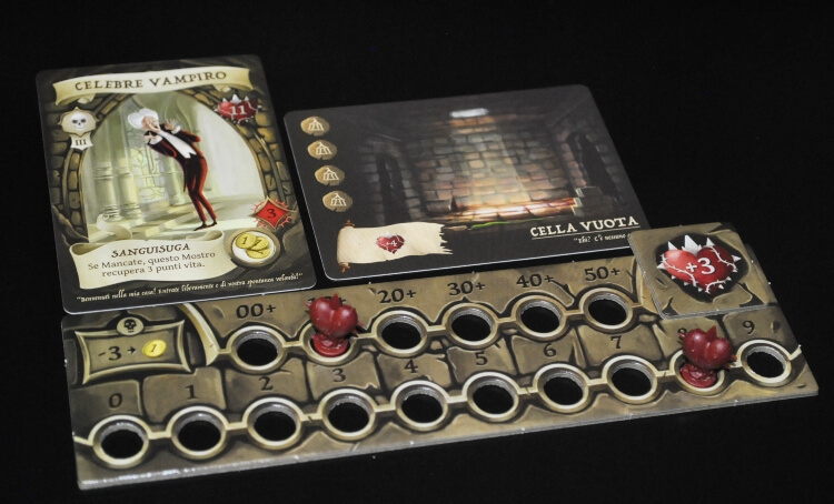 Settate i punti vita del mostro sulla relativa plancetta, conteggiando eventuali vite extra date dalla carta dungeon e/o dalla difficoltà di gioco scelta.