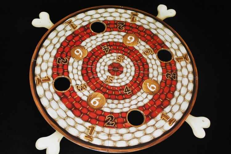Più vicino atterrerà al centro e più danni infliggerà. Se il dado esce o cade dal tavolo o si ferma in uno dei buchi del bersaglio, l’eroe subirà tanto danno quanto indicato dalla carta mostro.
