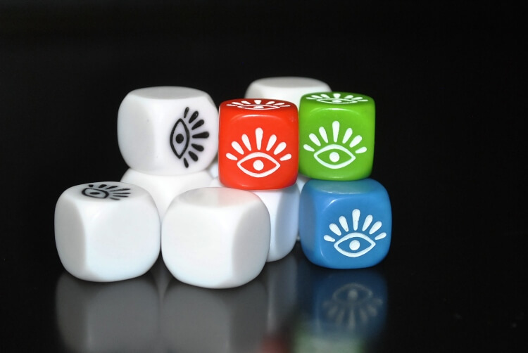 I dadi inoltre hanno delle facce speciali. Alcune facce sono vuote, altre hanno un simbolo che attiveranno l’abilità speciale dell’eroe legata a quel colore. Scegliete con cura dunque chi lancia cosa.