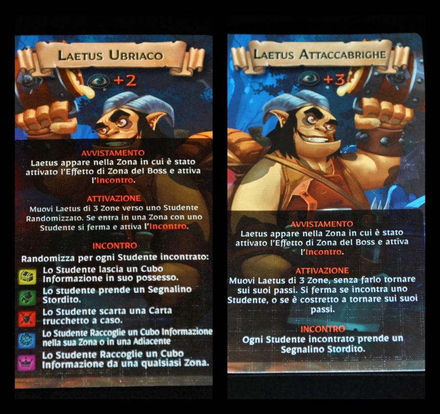 Il boss poi, se presente nella stessa tessera di uno studente, innalza a quest’ultimo il valore di allerta in caso volesse prendere cubi informazione.