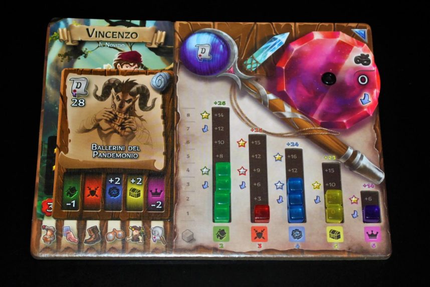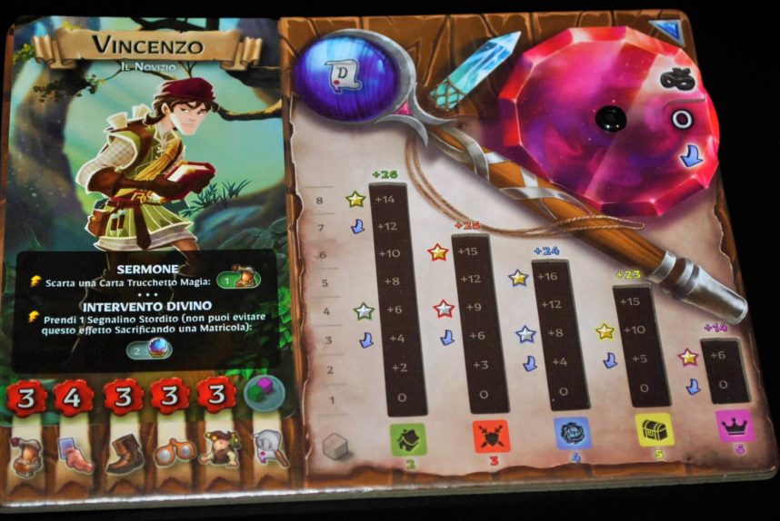 Ogni giocatore è dotato di una sua bacheca (plancia) dove inserirà la carta del suo personaggio.