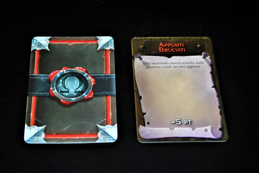 Al centro troviamo la carta Allerta. Qui verranno messe le Matricole rosse, i perfidi studenti della confraternita Omega.
