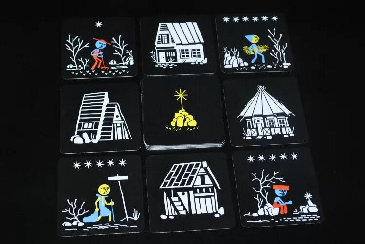 Ad esempio, giocando in 4 vi serviranno: 4 carte Casa, 8 carte Abitante e 8 carte Sigillo.