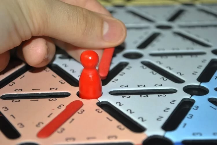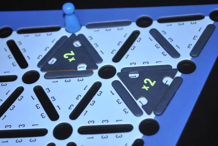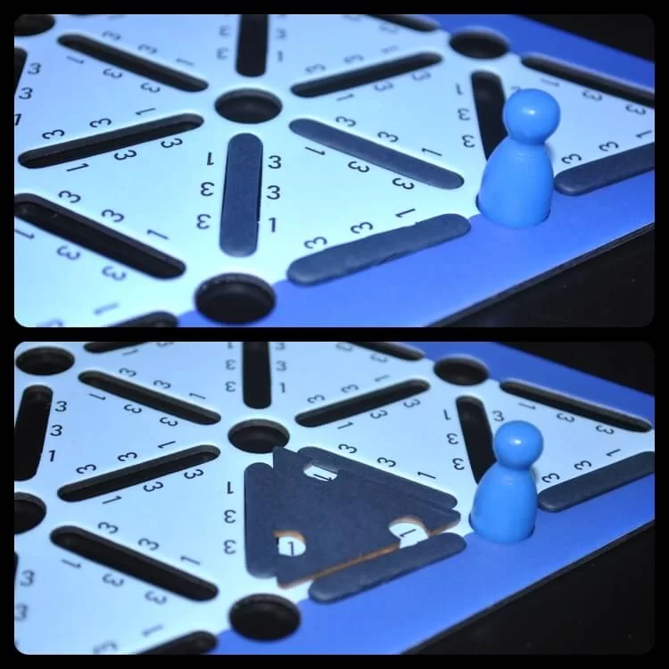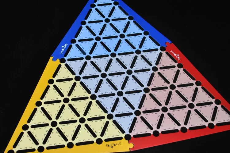 Il tabellone poi è composto da Nodi (fori) e Rami (spazi a linea) che formano uno schema triangolare sviluppato sulla base del Teorema di Eulero. Non spaventatevi, la parte matematica sta solo nel concept del gioco e dal fatto che una pedina può muoversi, in questo tipo di schema, lungo tutte le linee disponibili senza mai tornare sui propri passi.