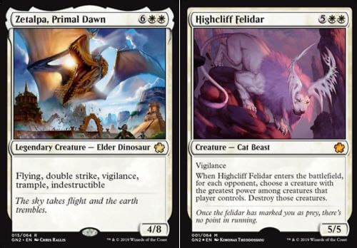 Glorious Combat è un deck Midrange mono bianco, che sfrutta anche meccaniche Aggro e White Weenie. Lo scopo è quello che di distruggere l’avversario partendo con piccole creature (come Lama Franca di Topa e Tenente del Console), per poi giocare creaturoni devastanti (come Zetalpa, Alba Primordiale e Sephara, Lama del Cielo). L’abilità Rinomare è la base del deck, ma non mancano altre abilità per controllare l’avversario (come le abilità di TAPpamento delle creature). La creatura esclusiva del deck è Highcliff Felidar: si tratta di un gigantesco felino che distrugge le creature più potenti degli avversari. È perfetta in multiplayer, ci donerà un buon vantaggio. Il resto delle magie è composto da pump (come Carica Ispirata) e removal (come Pacifismo).