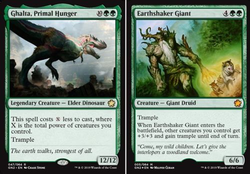 Massive Might è un deck Aggro mono verso, con tematiche Big e Dinosaur Tribal. Di fatti, giocheremo creaturoni che annienteranno gli avversari. Abbiamo creature del calibro di: Dorsospino Roboante (per potenziare i dinosauri), Raptor Squartamascella (ottimo per pescare aggrando), Elementale Risvegliaradici, Idra Vorace (utile come removal) e Ghalta, Fame Primordiale (il grassone per eccellenza). Come motore di mana sono presenti tre copie di Druido Fogliforme. La creatura esclusiva del deck è Earthshaker Giant, che ha un Sopraffare incorporato. Il resto delle carte è composto da pump (come Trionfare) e ramp (come Migrazione del Branco Tonante).