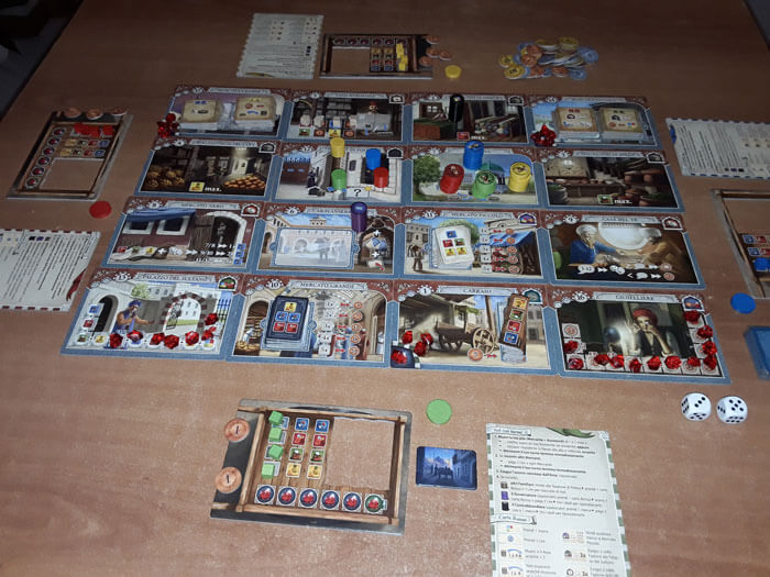 Dopo esser stato nella “Fontana”, il giocatore blu si sposta nella “Stazione di Polizia” e sposta il suo Familiare al “Carraio”, dove potrà acquistare un’estensione del Carretto per 7 Lire.