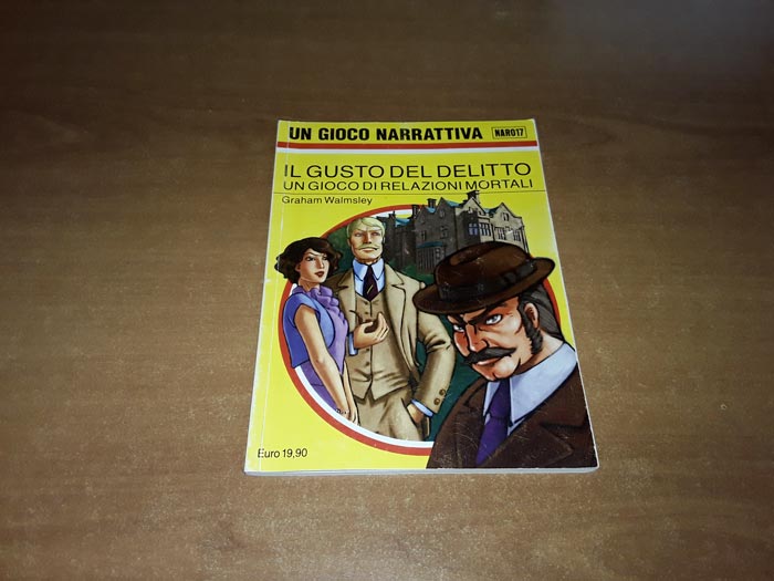 Senza farvi attendere oltre, vi illustro subito questo titolo: signore e signori, ecco a voi “Il Gusto del Delitto” (in originale A Taste for Murder), il gioco di ruolo di Graham Walmsley per 3-6 giocatori (anche se dà il meglio di se in 4-5), tradotto ed editato in Italia grazie alla Narrattiva, famosa casa editrice che da sempre si è occupata di portare in Italia titoli non molto conosciuti e legati al mondo dei GdR; anche se – qualche tempo fa – è diventata rinomata per la pubblicazione dell’edizione italiana di Lovecraftesque, gioco di Ruolo dell’anno 2018.