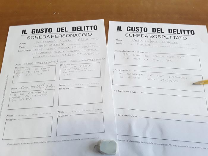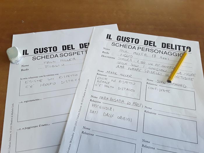 Una partita a “Il Gusto del Delitto” in pieno atto…