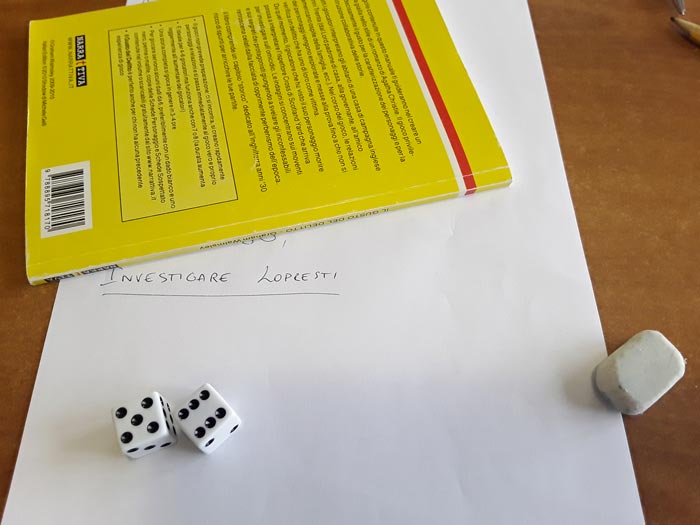 A questo punto, tutti i giocatori – coinvolti o meno nella scena, Ispettore compreso – tirano i dadi per l’esito (in modo analogo per l’Influenzare), più eventuali dadi Speciali (se vengono assegnati), si valutano i risultati e il vincitore sceglie l’esito dell’investigazione: