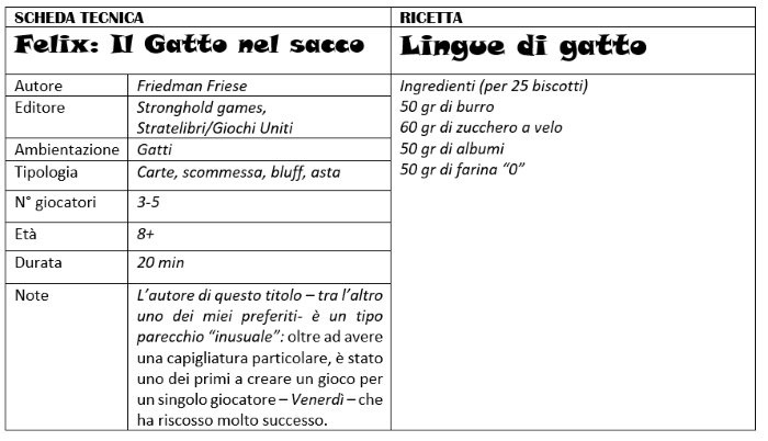 Perciò, non posso farvi attendere oltre: lettori e lettrici, oggi vi presento “Felix: Il Gatto nel Sacco” – in originale “Felix: The Cat in the Sack” – il filler di Friedmann Friese per 3-5 giocatori, edito dalla Stronghall Games, mentre in Italia dalla Stratelibri e dalla Giochi Uniti.