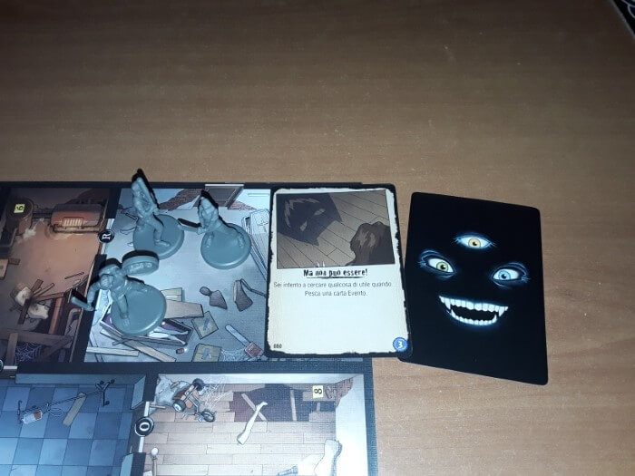… ma la sfortuna ha voluto che una presenza oscura abbia raggiunto quella stessa stanza: il giocatore, quindi pesca una carta Evento e ne subisce l’effetto.