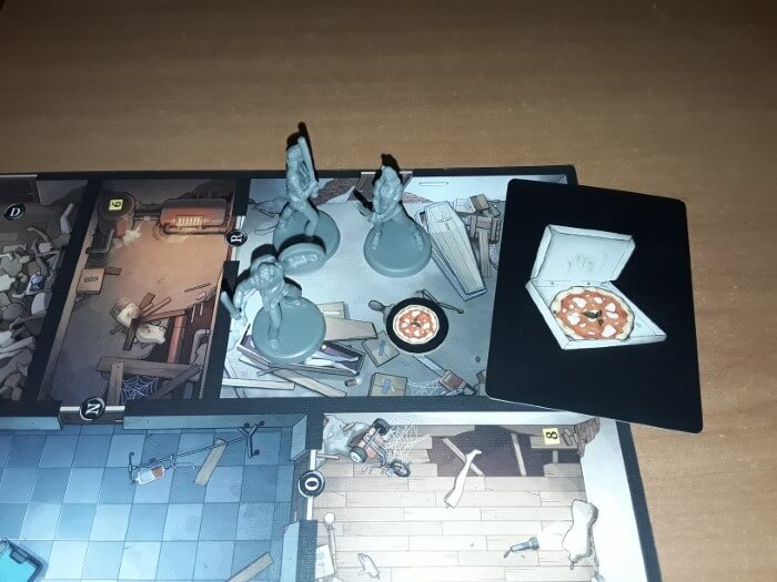 Gli investigatori arrivano in una stanza con un segnalino Ricerca: il giocatore con il Walkie Talkie decide di raccoglierlo e di pescare la prima carta Ritrovamento…