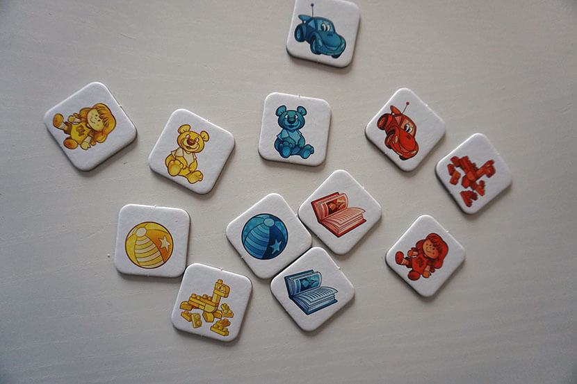 Il Setup è semplice, bisogna prendere 6 tessere giocattolo 2 per colore e le rispettive carte.