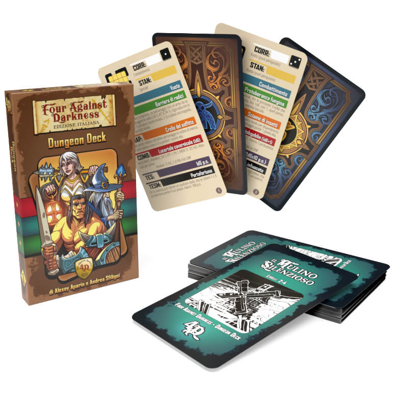 Four Against Darkness – Dungeon Deck è un nuovo modo per giocare a 4AD grazie a un mazzo di carte che simula parte delle tabelle di gioco presenti nel manuale base.
