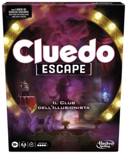 Ora i giocatori devono fuggire dal club di magia e risolvere il mistero nel gioco Cluedo Escape: Club dell’Illusionista! Scopri CHI l’ha sabotata, DOVE è tenuta prigioniera e COSA è stato usato per far fallire il trucco.