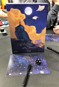 A Sky of Stars è un gioco che saprà stuzzicare l’immaginazione e la capacità di astrazione dei giocatori. Ciascun giocatore sarà chiamato a creare nuove costellazioni, disegnandone l’immagine sulla sua Volta Celeste, unendo tra loro le stelle suggerite dal Dado Stellare.