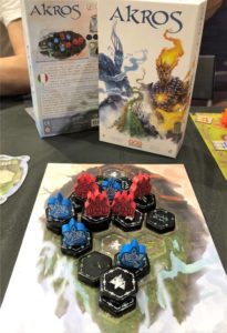 Akros è un gioco asimmetrico per due giocatori che li vede assumere il ruolo di due titaniche creature durante la genesi di un nuovo mondo. Utilizzando i vostri servitori elementali avrete l’occasione di plasmare a vostro piacere il paesaggio di un piccolo nuovo mondo per ottenere il controllo dei vari territori.