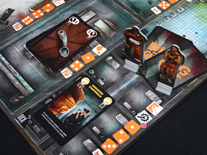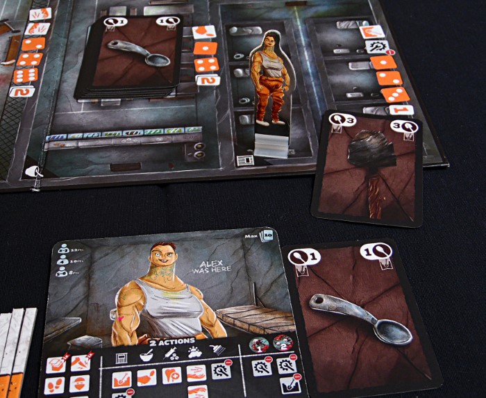 L’azione principale a cui dovremo dedicarci sarà scavare nella propria cella della zona detentiva, fino ad accumulare i punti necessari alla fuga, per farlo dobbiamo spendere uno strumento tra cucchiaio, pala e piccone, che conserveremo accanto alla plancia.
