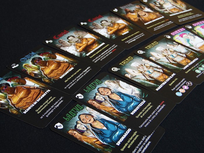 Tra le nostre possibilità abbiamo anche quella di unirsi ad una gang, per farlo dovremo giocare la quantità e il tipo di oggetti richiesti e, dopo averli scartati, prendiamo la carta in cima al mazzo della gang scelta. Si sa, l’unione fa la forza, e grazie alla nostra affiliazione avremo dei vantaggi, utili per raggiungere i nostri scopi. La nostra non è una scelta di lealtà, ma solo di convenienza, quindi saremo liberi di cambiare bandiera in qualsiasi momento e lasciare una gang per un’altra a seconda di che cosa ci conviene.