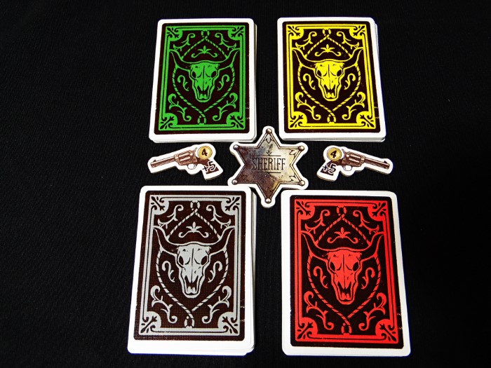 Inizieremo il viaggio con cinque pedine cappello del proprio colore e sei dollari, il primo giocatore prende la stella dello sceriffo e…