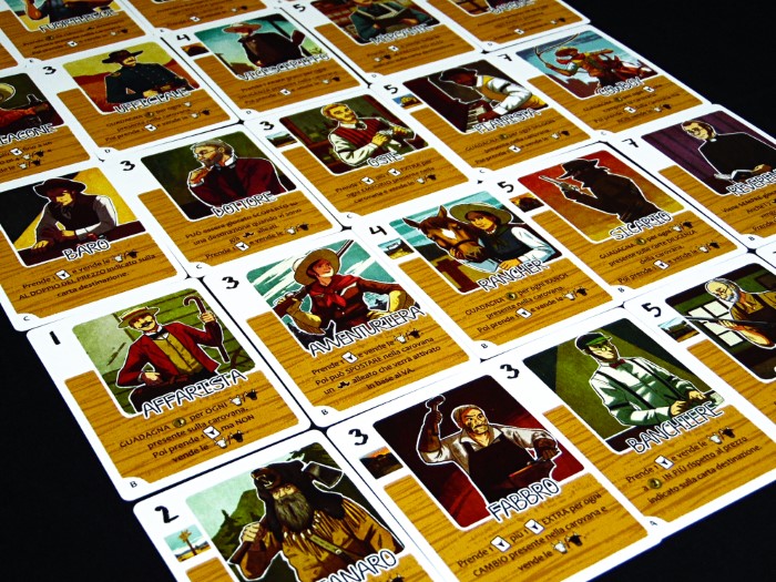 I personaggi hanno ognuno un valore, che indica la loro influenza nella trattativa, chi avrà la più alta sarà il primo a gestire le trattative delle mandrie, hanno inoltre ognuno particolari abilità da sfruttare nelle contrattazioni. I più deboli come cercatori, ubriaconi e imbroglioni ci aiuteranno come possono, ma dovremmo richiedere l’aiuto di cowboy, pistoleri e sicari per gli affari più delicati ed importanti.
