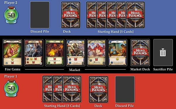Hero Realms è un gioco di deck-building, ma non mancano elementi di card drafting e di gestione della mano. Lo scopo del gioco è quello di sconfiggere gli avversari azzerando i loro punti vita. Vince la partita l’ultimo giocatore che è rimasto attivo sul campo di gioco.