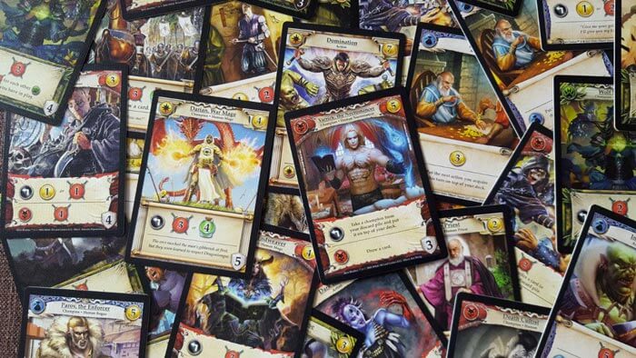 Essendo un deck-bulding (come i famosi: Dominion, Thunderstone e il citato Star Realms) il mazzo iniziale viene sfruttato per ampliarlo e/o modificarlo. Si deduce facilmente che gli ori e i rubini sono la nostra valuta di gioco, mentre la spada corta e il pugnale servono per fare danni.