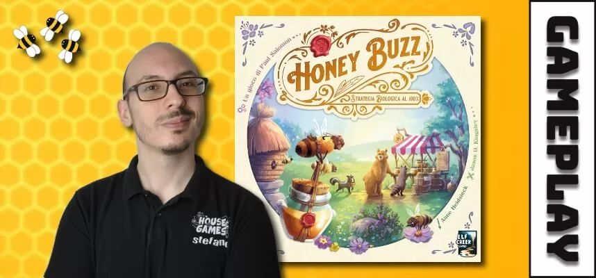 Honey Buzz è un gioco competitivo di gestione risorse e piazzamento tessere per 1-4 giocatori, ideato da Paolo Salomone, dalla durata di circa 45/90 minuti a partita e portato qui in Itala da Ghenos Games.