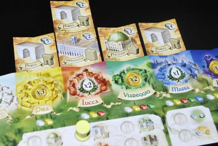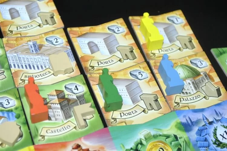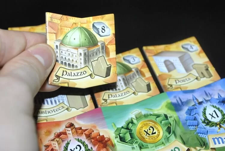 Palazzi di Carrara è uno di quei giochi dove non si hanno milioni di scelte possibili durante il turno ma poche e buone, soprattutto per quanto riguarda il tempismo d’azione.