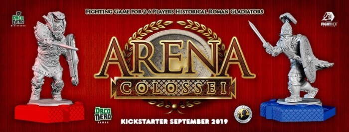 Arena Colossei ricrea fedelmente i combattimenti tra Gladiatori, con miniature scolpite da me, per la prima volta storicamente attendibili: sarà lanciato a settembre su Kickstarter, e a Play potrà essere provato in anteprima assieme agli autori dato che saremo ospiti di Giochi Uniti all’interno del loro stand nel padiglione A. Qui l’anteprima: https://www.facebook.com/arenacolossei/. Si tratta di un progetto importante, forse un po’ troppo grande e impegnativo per una realtà piccola e inesperta alla sua “prima volta”, ma collaborando con navigati professionisti, di cui ci fidiamo molto grazie a una partnership che dura da lungo tempo, sono convinto che proporremo un grandissimo prodotto. Mi auguro che i giocatori percepiscano tutto l’impegno e la passione che stiamo mettendo in questa produzione.