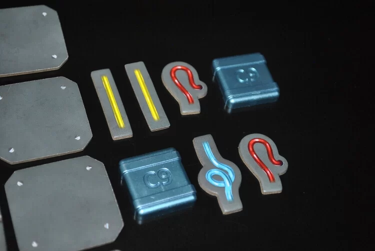 I materiali sono davvero ben fatti. I segnalini Esplosivo, Batteria e Ricevitore sono davvero belli da vedere e da maneggiare, sul tavolo il tutto apparecchiato fa una bella figura.
