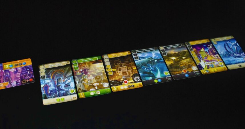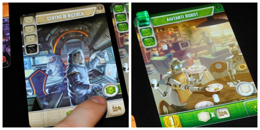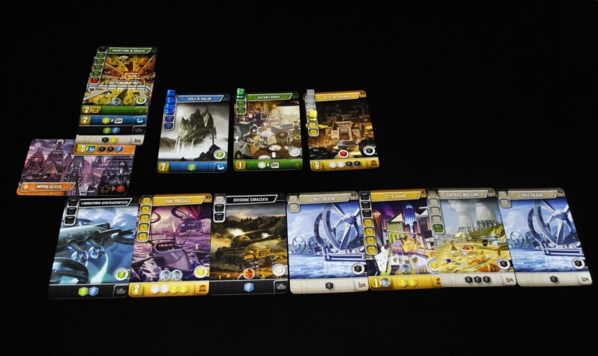 Se si completa una carta, si rimettono i cubetti sul tabellone, si prendono gli eventuali bonus di costruzione e la si aggiunge al nostro impero.
