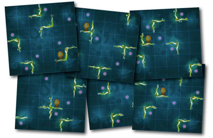 Il primo giocatore piazza il proprio segnalino in una porta qualsiasi sul tabellone. Gli altri giocatori, in ordine di turno, piazzeranno in senso orario a partire dal primo il proprio segnalino. Infine, sull’ultima porta si posizionerà il segnalino che indicherà il punto di rigenerazione.
