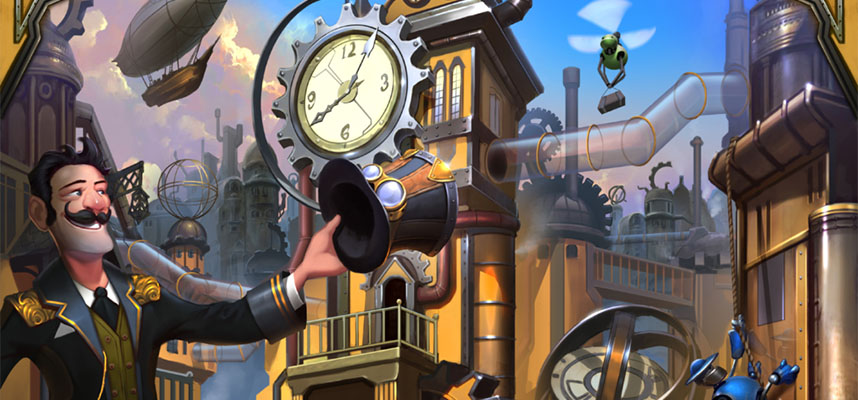 City of Gears è stato originariamente creato nel 2012 dal designer di Roll for It, Chris Leder, e nello stesso annunciato come il vincitore del The Game Crafter’s Steampunk Design Challenge